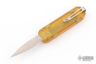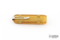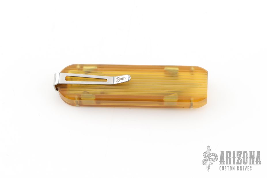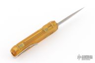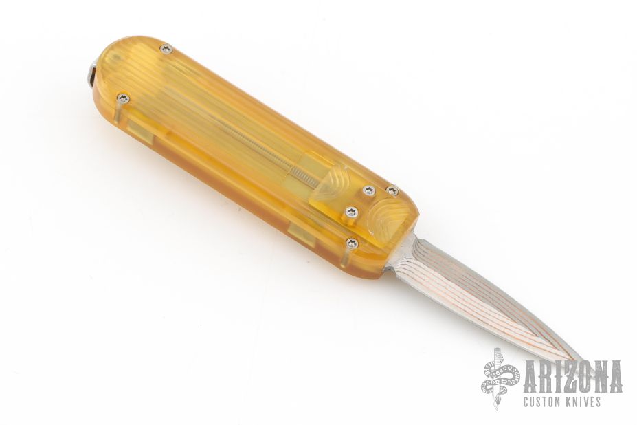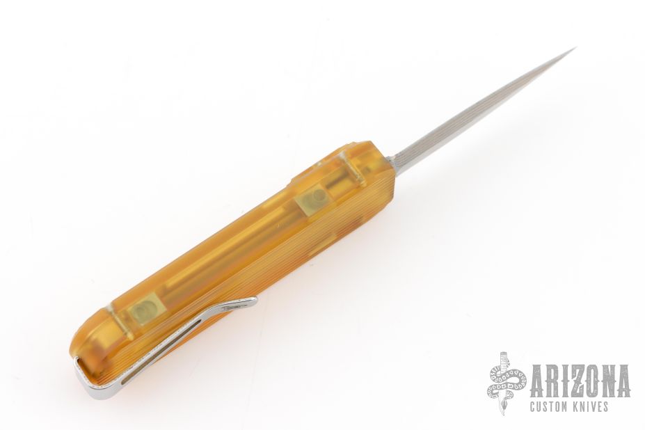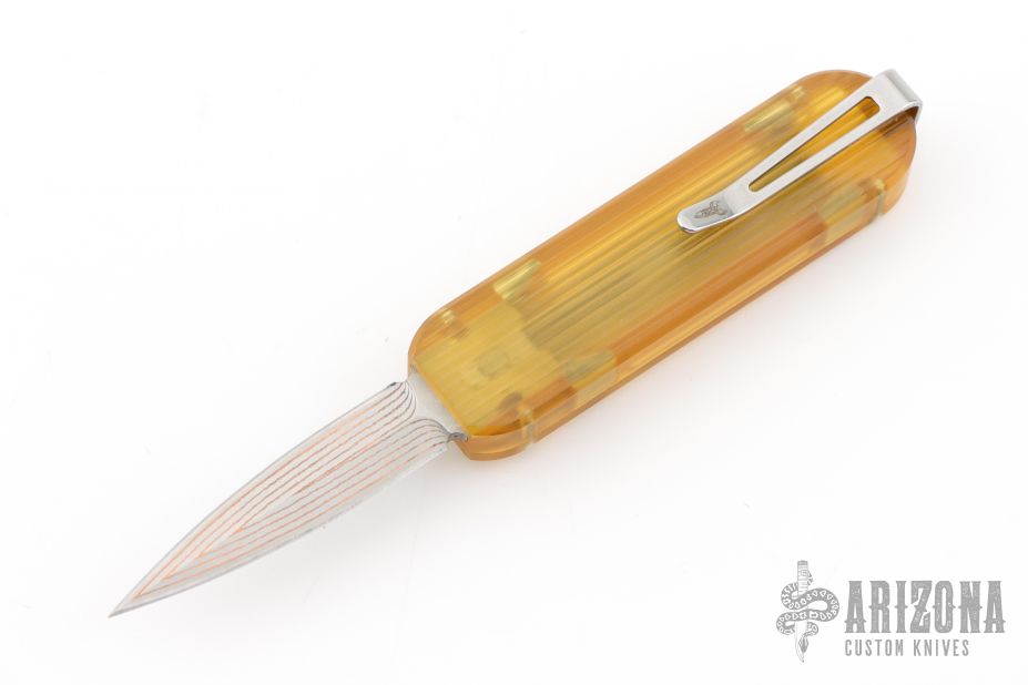 This Zulu Spear by Darriel Caston features a satin finished double edged San Mai Damascus blade. The handle has an Ultem frame with stainless hardware and clip. Black push button. Comes with original box. Excellent condition.