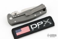 This HEST/F Urban by DPX Gear is #028, it features a stonewashed blade with notched thumbrest and dual thumbstuds. The handle has a bead blasted titanium frame with tip up reversible clip and black aluminum backspacer. Has a couple light scuffs, otherwise excellent condition. Comes with original box.