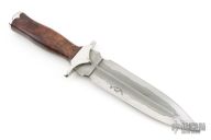 This Roman Style Dagger by David John Handmade Knives features a double edged blade with a very nice hamon, .665" blade stock and 1.950" blade depth, hidden tang construction. The handle has a 303 stainless steel guard and butt with Arizona desert ironwood grip.   Excellent Condition.
