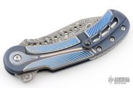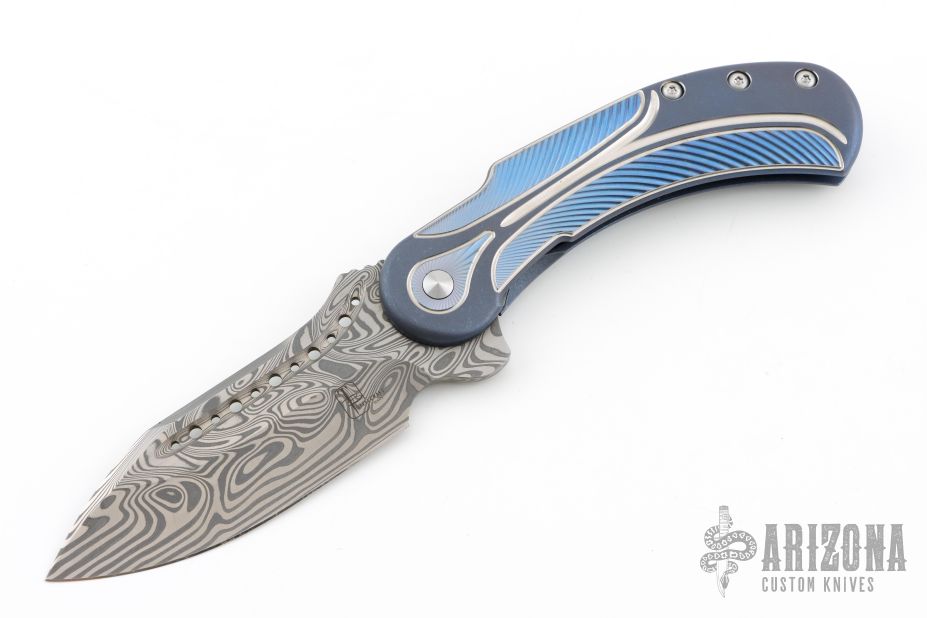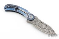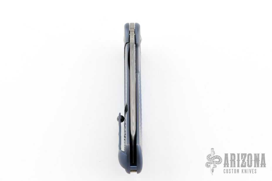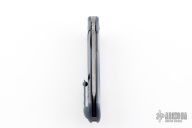 The Field Marshall from Steelcraft Knives features a Draupner Damasteel blade, notched thumbrest, fullers and a flipper. The handle has an anodized and milled titanium frame with a matching backspacer and tip up clip with ceramic ball and hidden screws. Ceramic IKBS. Comes with a zippered case. Nice detent, lockup and blade seating. Excellent condition.