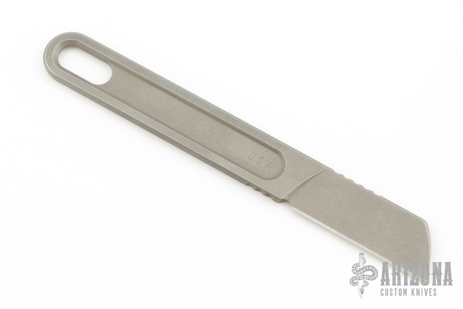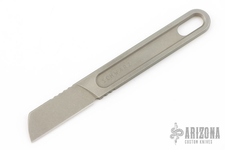 This Scalpel+ by Schwarz Knives features a stonewashed blade with notched thumb and finger rests, lanyard hole, .129" blade stock and .623" blade depth, integral construction. Comes with COA. Excellent condition.