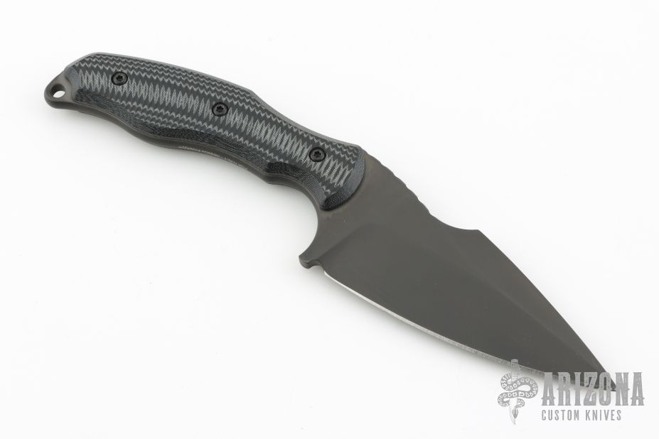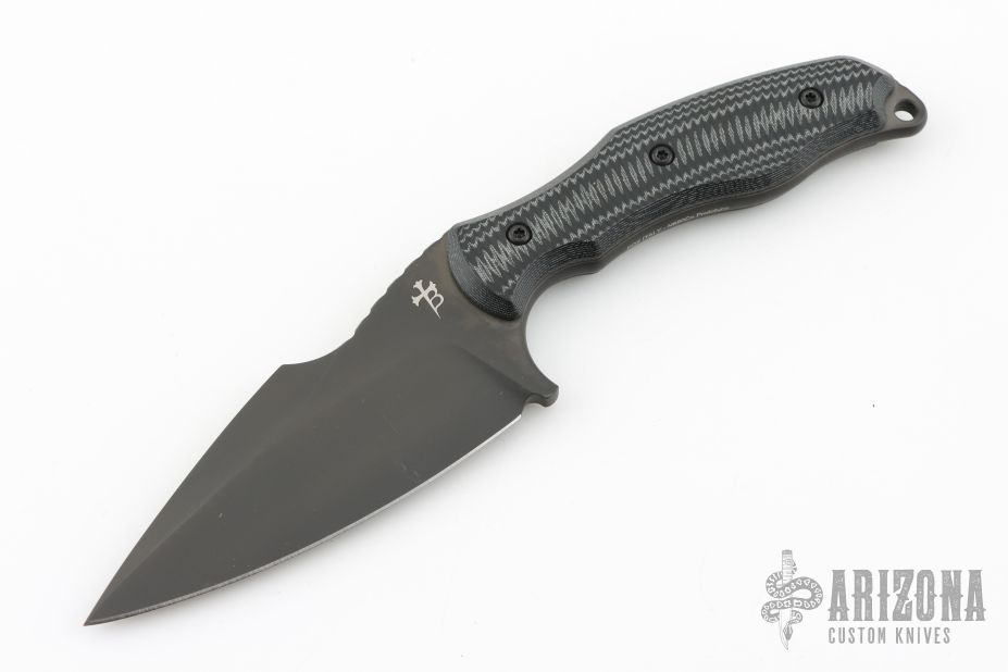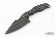 This Prototype SB1 by Fox Cutlery is a Borka Blades design, it features a black blade with false top edge and notched thumbrest, .195" blade stock and 1.735" blade depth, full tang construction with black linen micarta scales. Comes with a zippered case. Has a couple light scuffs, otherwise excellent condition.