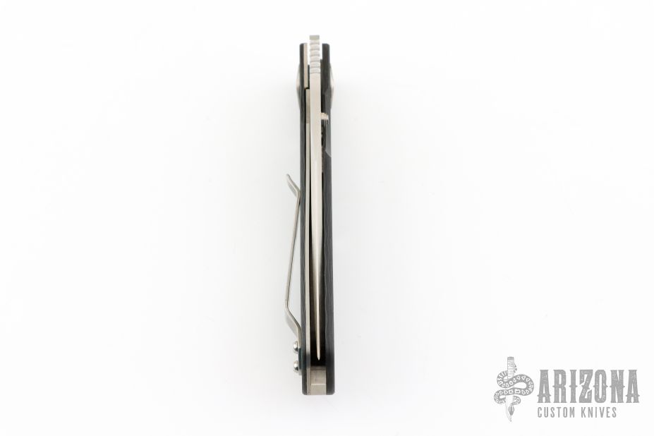This Model ACC1 is a Walker Design with a satin blade and carbon fiber scales, titanium liner and stainless steel backspacer and tip up clip. Nice detent, lockup and blade seating. Has a couple light scuffs, excellent condition otherwise.