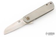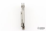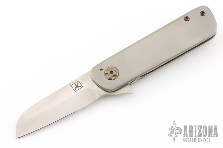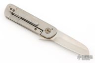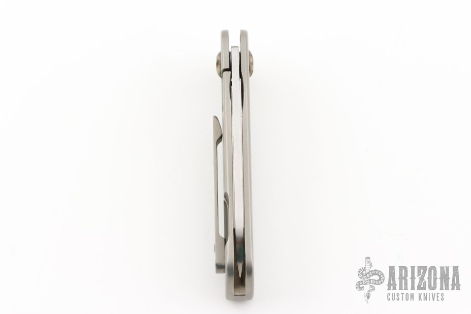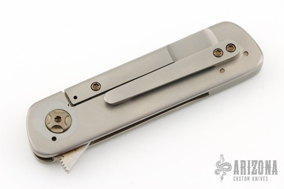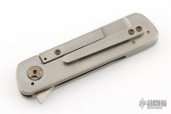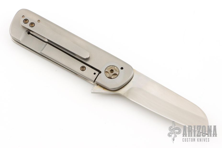 The Mini-Plugger framelock flipper by Alan Kritzman features a hand rub satin finished blade with a notched flipper.  The frame is bead blasted titanium with matching clip and backspacer. Rides on bearings, nice detent, lockup and blade seating. Has some light scuffs, otherwise excellent condition. Comes with COA dated March 2019