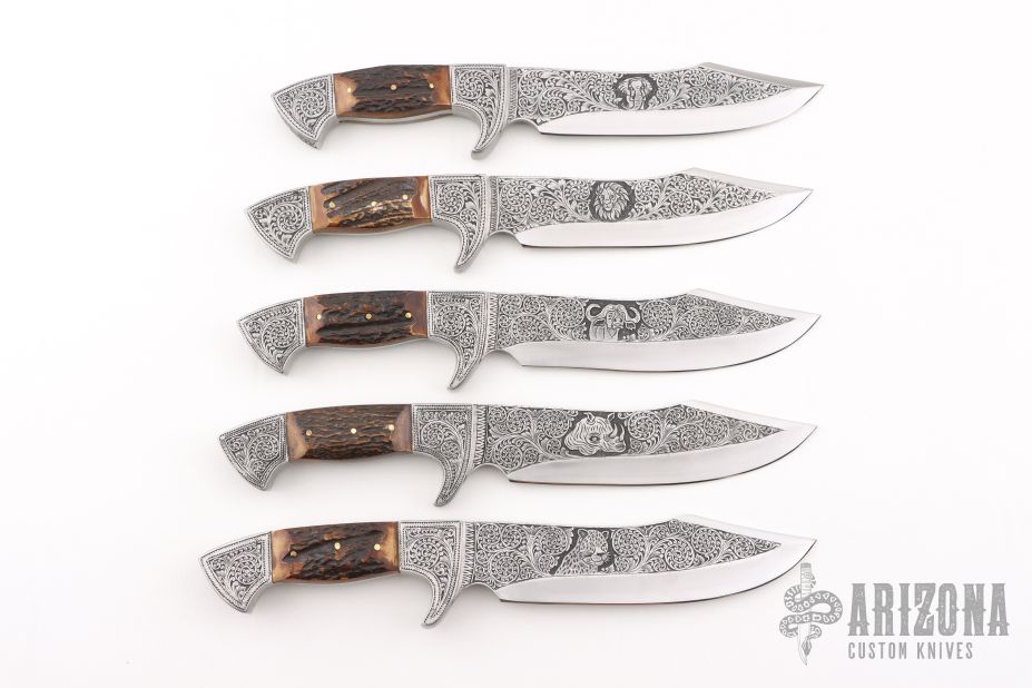 This set of 5 knives by Afaaq Custom Knives is title African Safari Set.