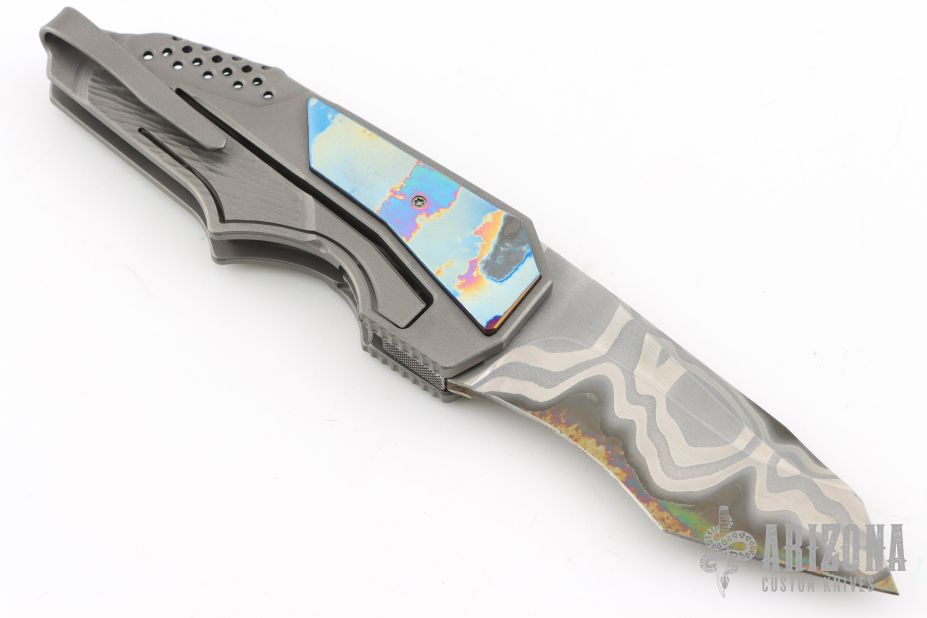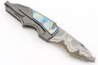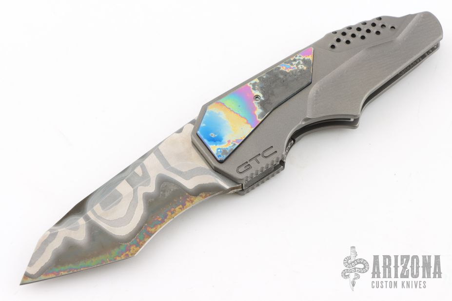 This spirit of technical innovation is only part of the GTC formula. A look at the designs from the aesthetics reveals another level of Gus's creativity. It's no surprise that his work has graced the cover of Blade Magazine with the caption of "Dress Tactical Folder". Gus uses numerous, varied materials, shaping them into works of modern art. Not only do his creative combinations please the eye, they all come together to function as a single, seamless entity with mechanical tolerances that boggles the mind. Gus is always striving to improve his knives, never afraid to test new theories, always working with the latest available materials, technology and techniques. Gus achieves subtle two-tone surfaces simply by varying bead-blast material from glass to ceramic. Gus takes advantage of the best materials in the community and at the same time, is trying his hand at forge-welding his own steel. The final element to the GTC formula can be found in the minutest details. Screw heads, thumb-studs are custom-cut; clips are harmonized with the blade material, coarse jigging or fine filework satisfy both the aesthetic and functional requirements. Innovation, design, attention to detail and accuracy are the cornerstones of the GTC formula.