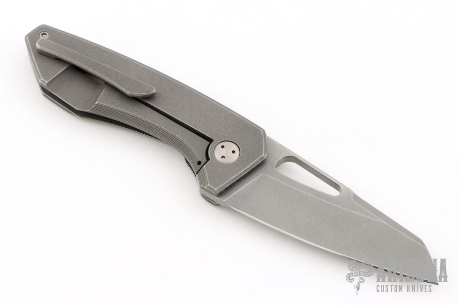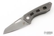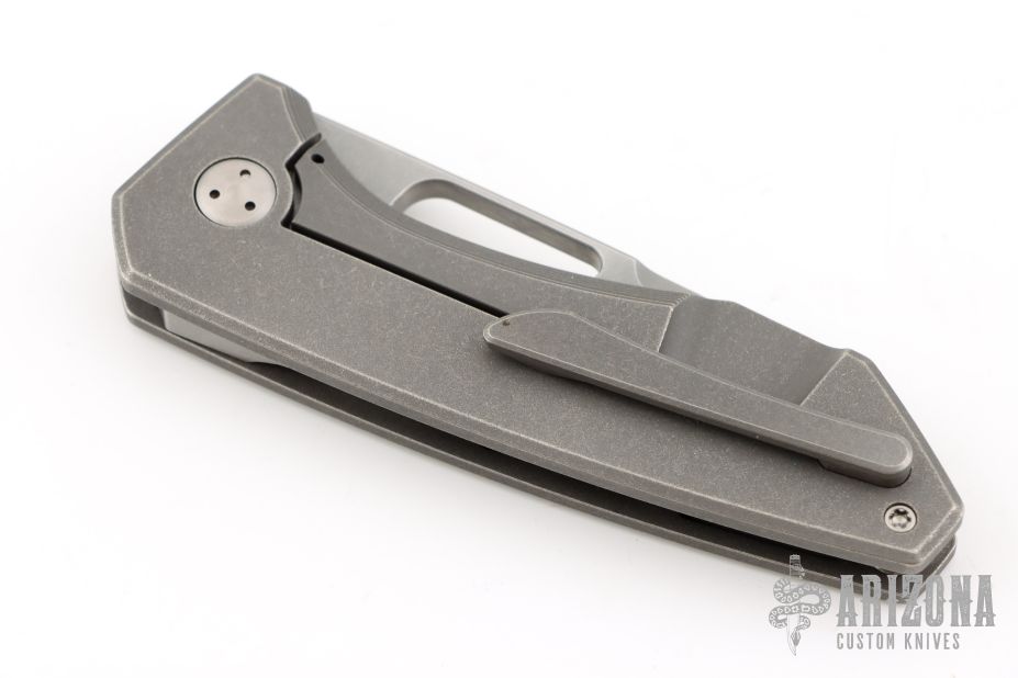 This M11 features a stonewashed sheepsfoot style blade with a large thumbhole.  The handle features a dark milled titanium frame with a matching tip-up pocket clip.  Includes a milled aluminum display case and COA dated 09-2025.  Nice detent, lock up and blade seating.  New from maker!