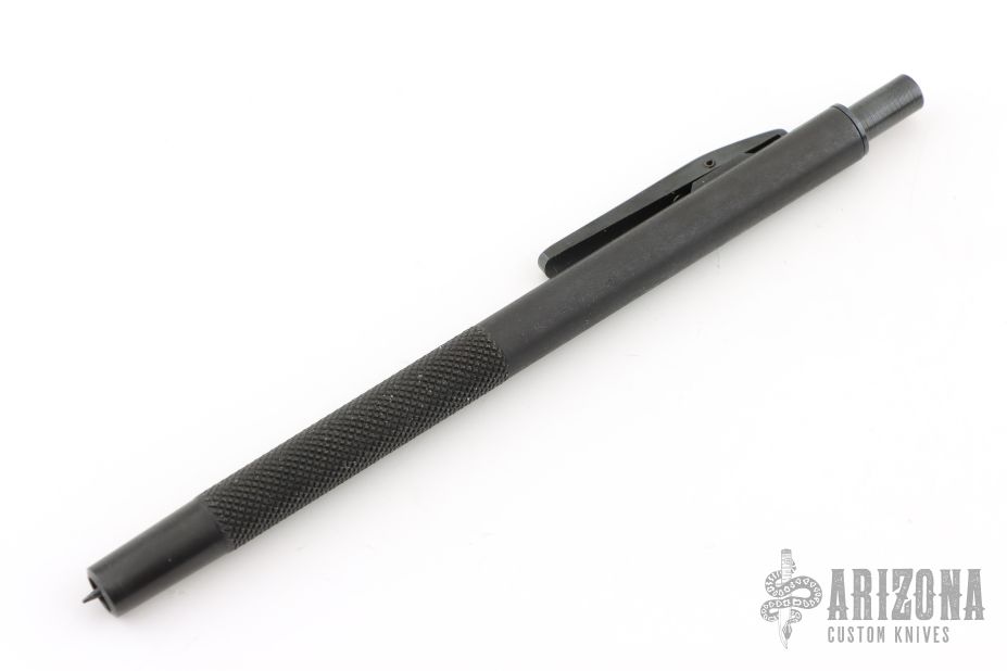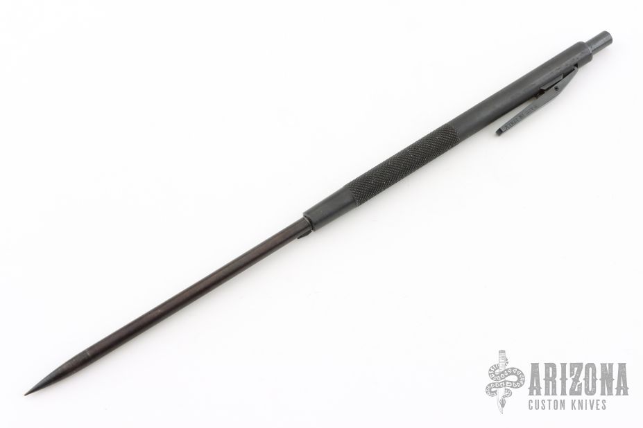 Automatic spike extends quickly when pocket clip is pressed. Recharge spike by pressing it back into pen with hard surface. Excellent condition.