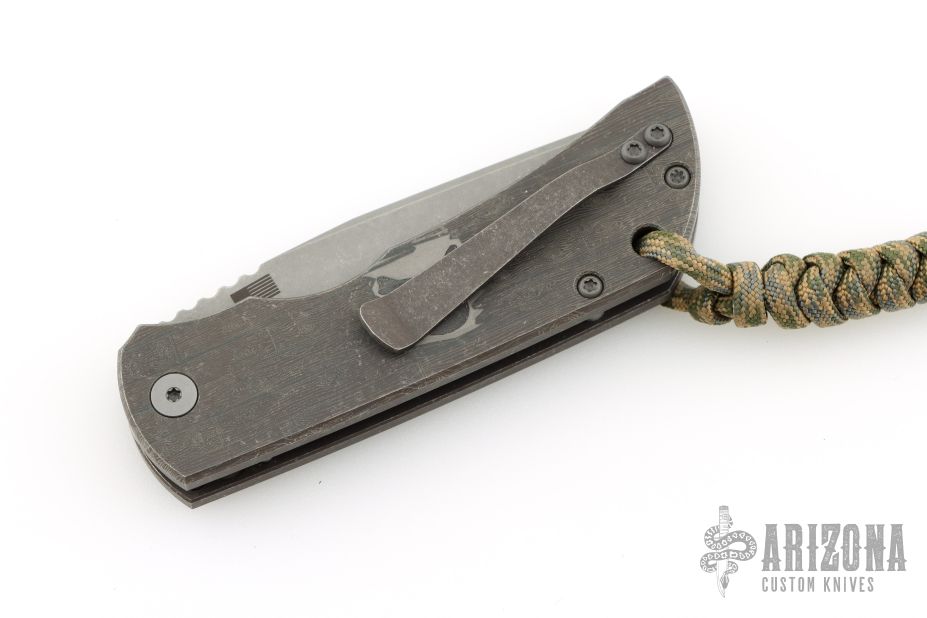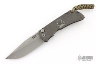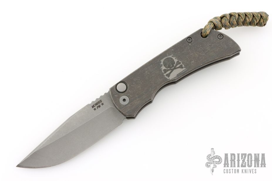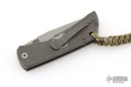 This MAC2 features a stonewashed clip point Magnacut blade with a notched thumbrest. The handle features a textured/anodized titanium frame with a matching tip up pocket clip. Excellent condition.