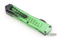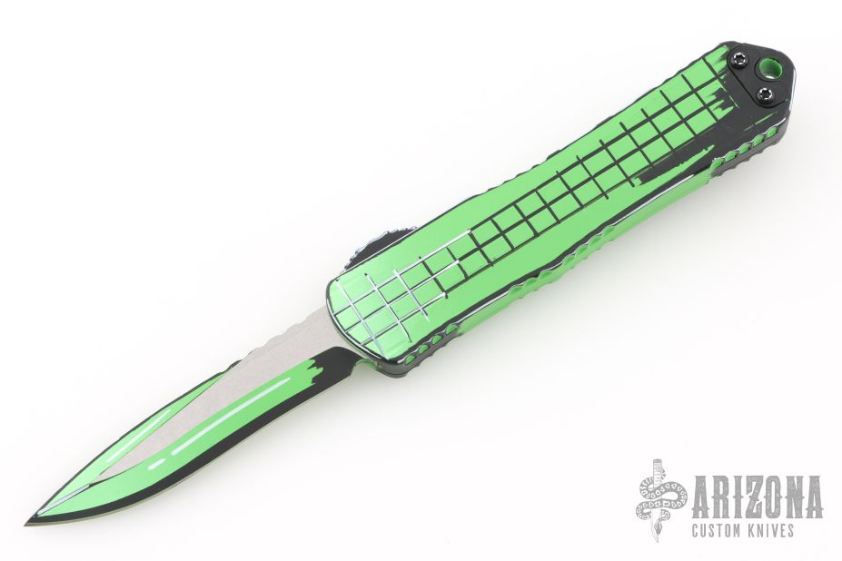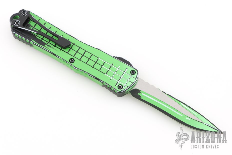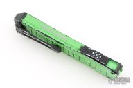 This Manticore-E by Heretic Knives features a bowie blade. The handle has an green/white/black aluminum frame with matching black stainless steel tip down clip. S/N 072. Comes with original box, and lube. Excellent Condition.