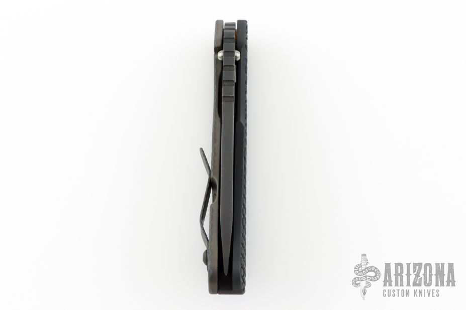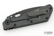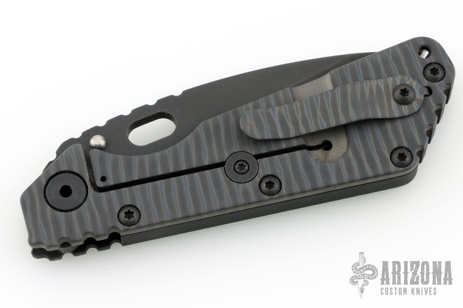 This Monkey Edge SMF by Mick Strider features a black blade with thumb hole and notched thumbrest. The handle is comprised of black MEFP aluminum and flamed titanium with matching titanium clip and Hinderer "Lock Bar Stabilizer" for maximum reverse lock retention. Excellent condition.