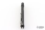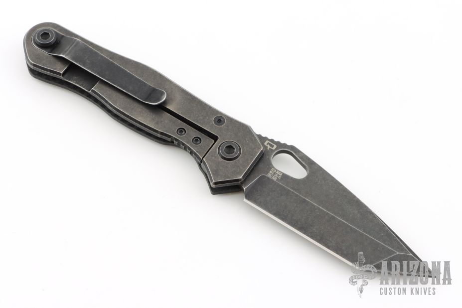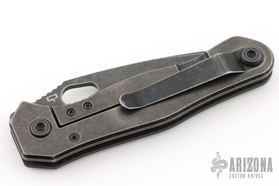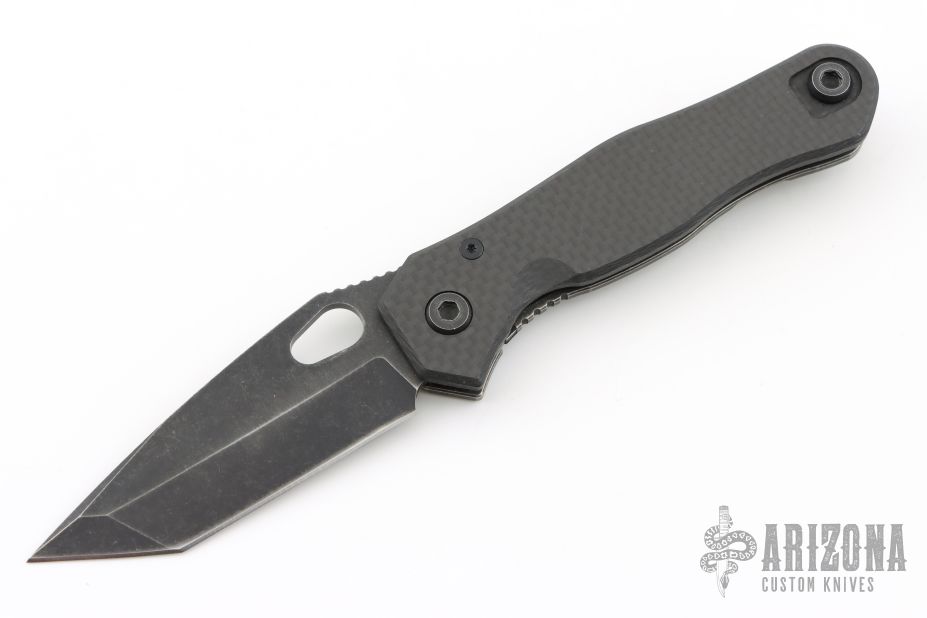 The Quartermaster Roper XL has a black tumble finished tanto blade with notched thumbrest and thumbhole. The handle has a carbon fiber and a black tumbled titanium frame with a tip up tumbled black stainless steel clip. Rides on bearings. Nice detent, lockup and blades seating. #18 of 300 and dated 06/15. Comes with original box and card dated 6-28-2015. Excellent condition. Comes with a black G-10 scale as well.