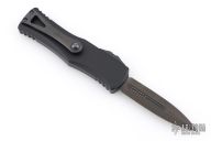 This Hera by Microtech Knives features a double-edged DLC stonewashed blade with dual fullers. The handle has a black aluminum frame with a tip down DLC titanium clip with ceramic ball inset. Dated 08/2021 and s/n 172. Excellent condition.