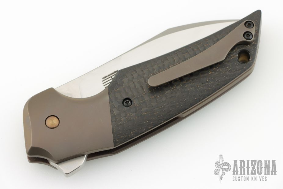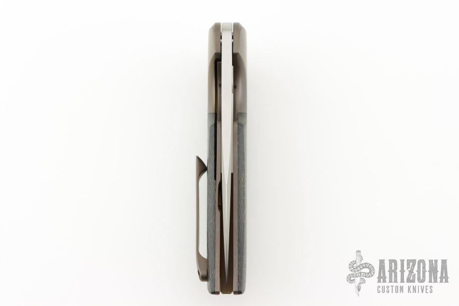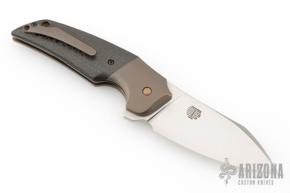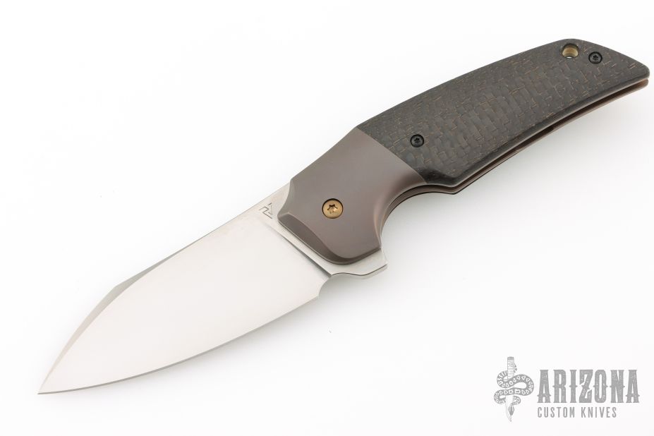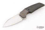 This HiFi by Philippe Jourget is a Tashi Bharucha design. It features a hand rub satin finished blade with flipper. The handle has a bead blasted and anodized titanium bolsters and liners, lightning strike carbon fiber scales, blasted and anodized titanium backspacer and tip up clip. Comes with a zippered case. Excellent condition.