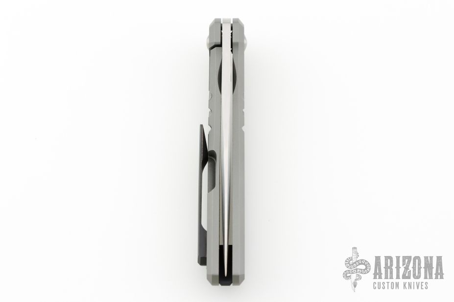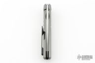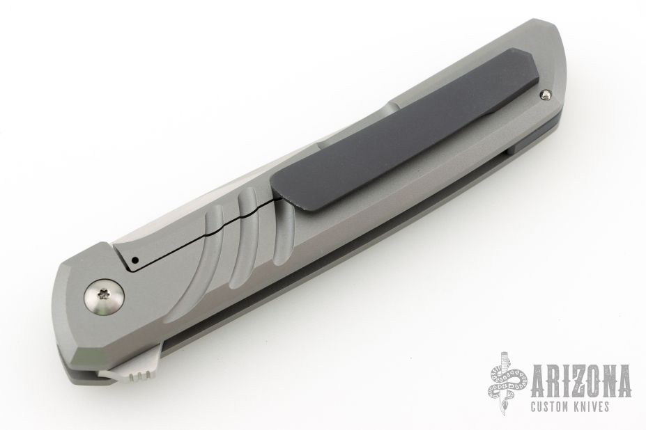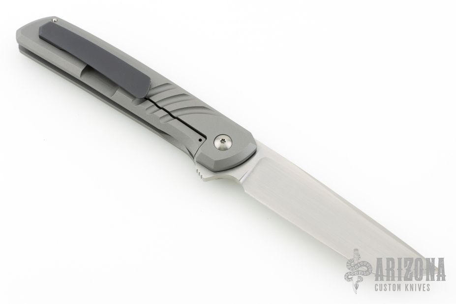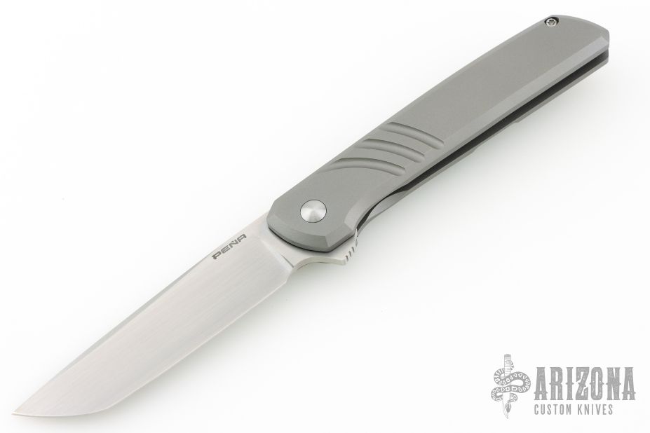 This La Carolina by Enrique Pena features a hand rub satin finished spear point tanto blade. The handle has a blasted titanium frame black backstrap, and tip up clip. Nice detent, lockup and blade seating. Comes with maker's zippered case. Excellent Condition.