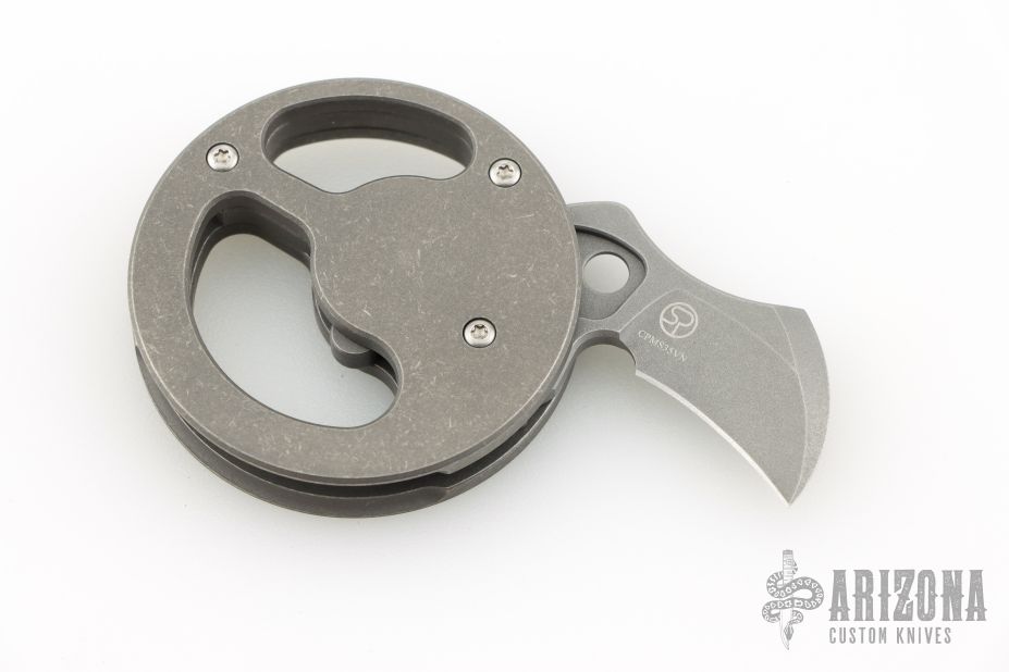 The Coin Claw is one of the designs for which Serge Panchenko is best known. It's sized just over an American Silver Dollar at 2" in diameter with a 1.125" hawkbill blade. The blade is made from CPM-S35VN stainless steel with a stonewashed finish. It's an automatic knife with a strong detent and very unique action. The handle is made from stonewashed titanium with a 6Al4V titanium backside with stainless steel Torx screws holding it all together. If you want a simple everyday carry blade or neck knife that is unique, utterly well-built, and sure to be a talking point, look no further than the Mid-Tech Coin Claw Gen 5 AUTO folder.