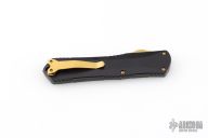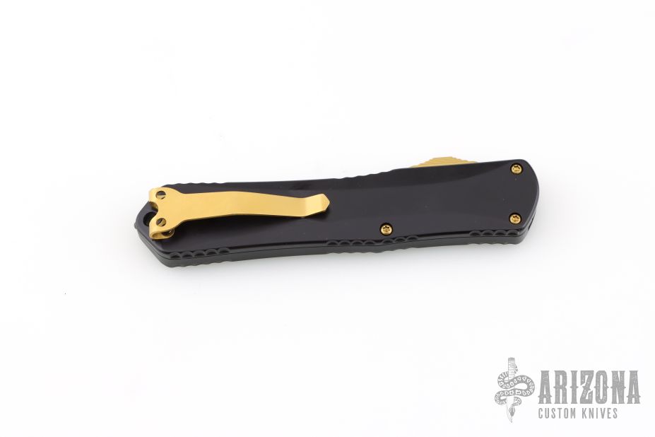 This Manticore-X by Heretic Knives features a TI-Nitride tanto blade with notched thumbrest. The handle has a black aluminum frame with Ti-Nitride stainless steel hardware, tip down clip, and thumbslide. Comes with original box and card. Excellent condition.