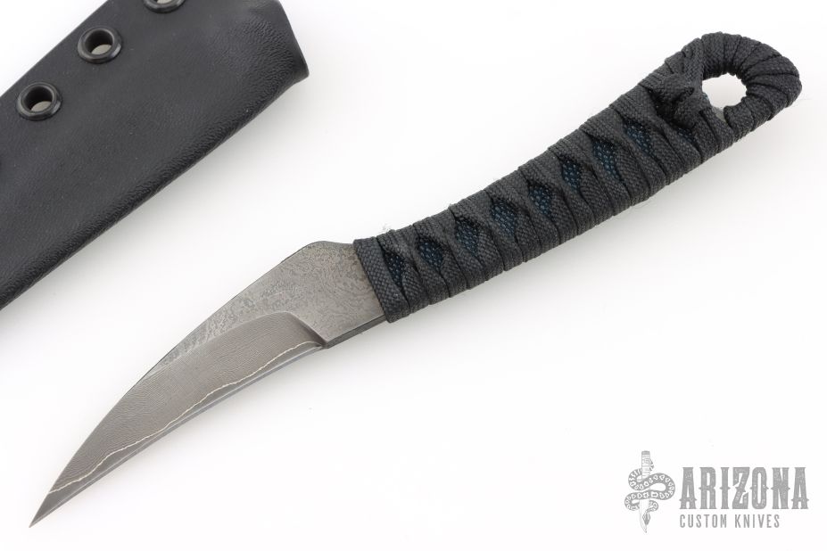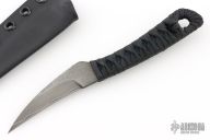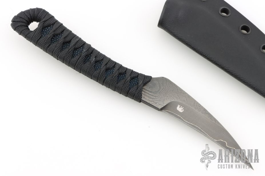 This Pikal by Greg Moffatt features a Go-Mai blade with .151" blade stock and .847" blade depth, full tang construction. The handle has black cord wrap over stingray skin. Comes with kydex sheath. New from maker at the 2025 Blade Show West!