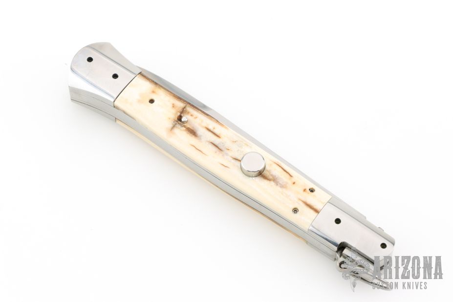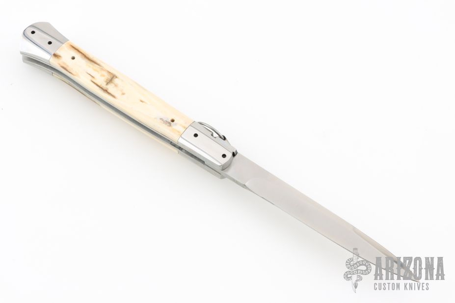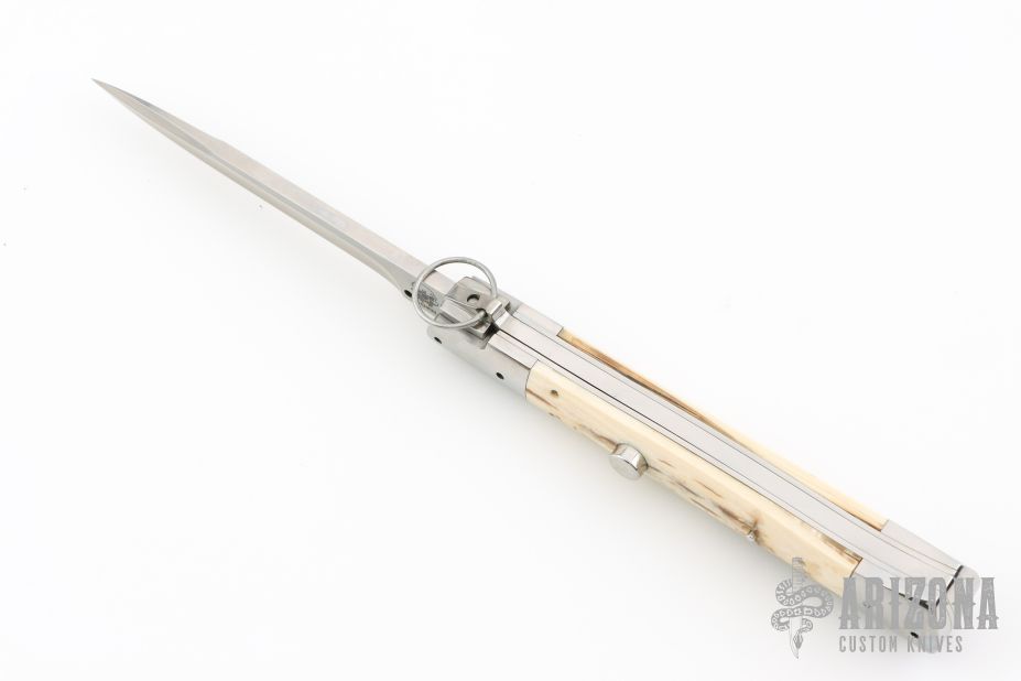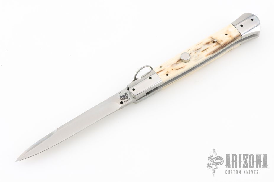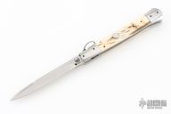 "When I was 9 years old my Dad gave me a 6 inch Rizutto with a broken spring. I can remember trying to stick a coat hanger wire into it trying to fix it but to no avail. I later took the blade out and stuck it into one of those Taiwan switchblade combs because I wanted it to work so bad but I ended up destroying both of them in the process. When I was a kid I loved going to flea markets and gun shows looking for switchblades and butterfly knives that I've always liked. Even now as an adult I love them all the more. I like most all knives but have always had a thing for the classy Italian stiletto's. Its been a blast to meet up with other collector's on the internet and also learning the mechanics from makers like Don Hall, Arlin Walker, Bill McHenry, Reese Weiland, Jerry Rados, and George Cameron to name a few. I currently reside in Ohio where I am now a full-time knifemaker with a modest machine shop. I also restored antique stiletto's professionally for antique dealers for several years before becoming a custom knifemaker."