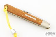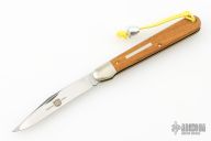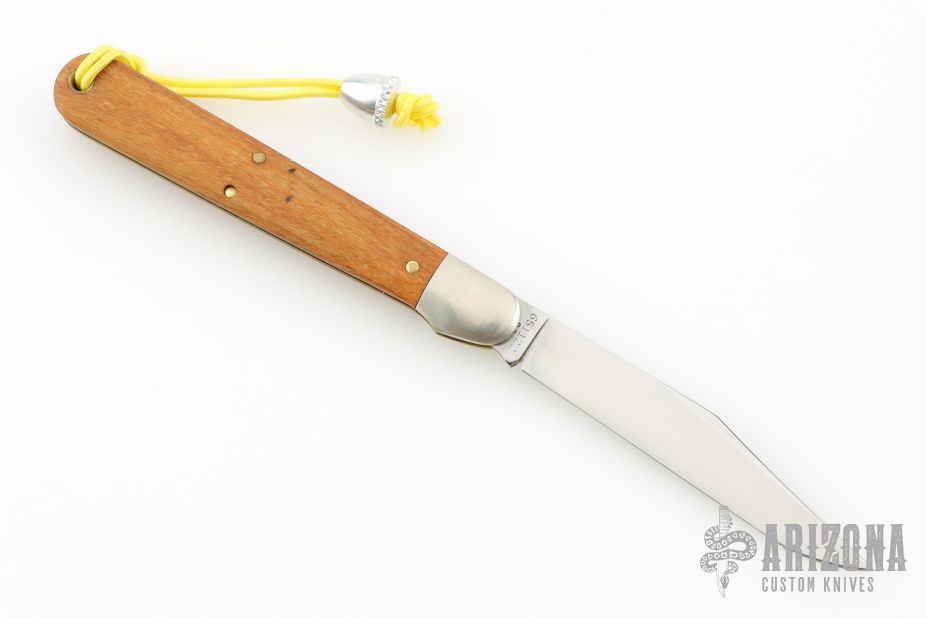 This knife by Great Eastern Cutlery features a polished finished blade with a nail nick. The handle has nickel silver bolsters, escutcheon and brass liners, Texas Osage Orange wood covers. Has half-stop. Comes with original tube. Excellent condition.