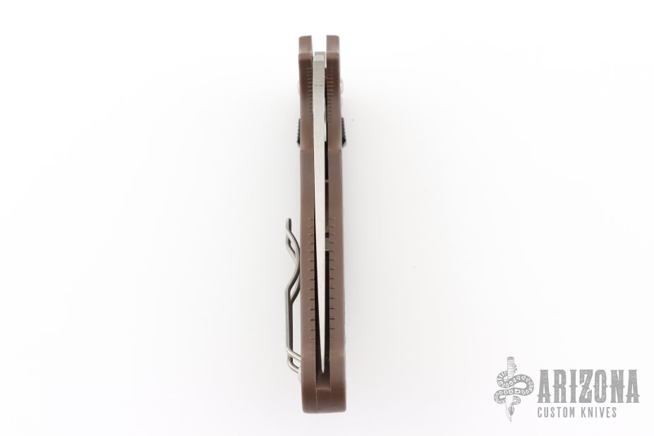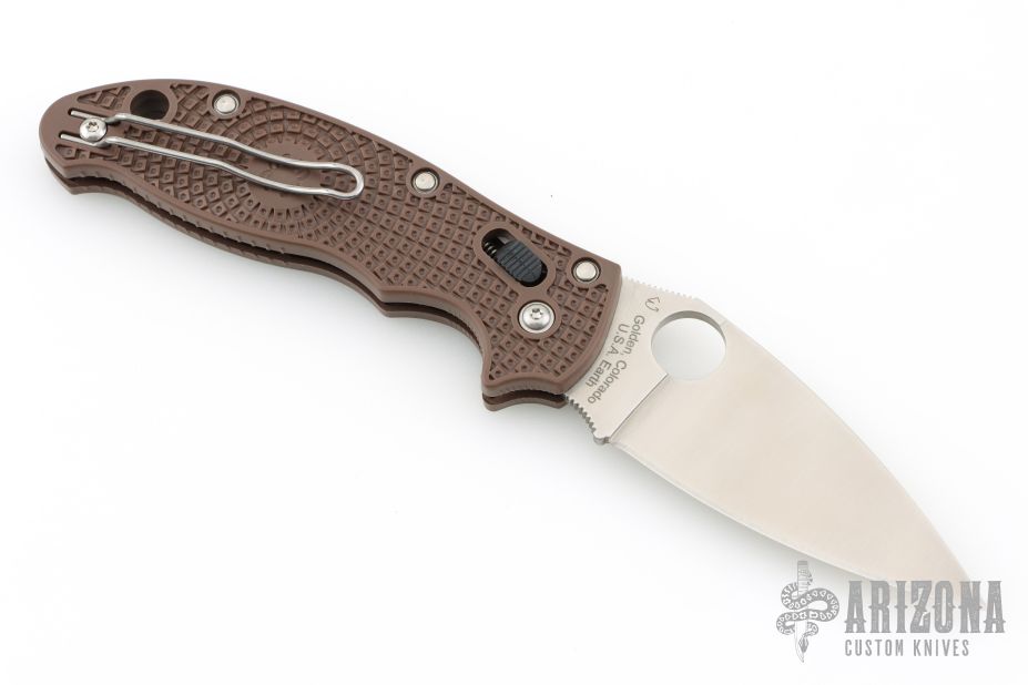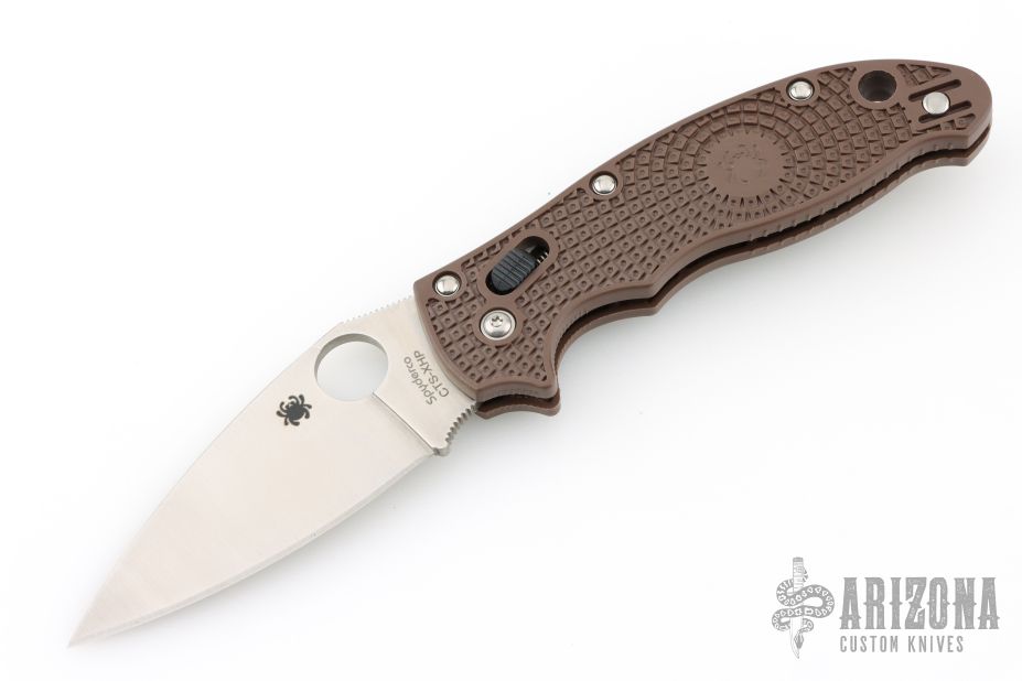 This Spyderco Manix 2 is from a sprint run with Maxamet blade steel. Has a satin finished blade, thumbhole and nothced thumbrest. The handle is comprised of brown FRN. Lanyard tube in pommel. Includes original box and papers. New condition.