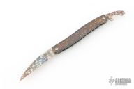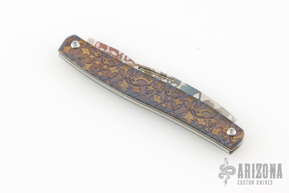 Darriel Caston is D Rocket Designs. "Makers such as Timothy Wright, Terry Davis, Terry Lee Renner, Ron Lake, Jim Corrado and James Whitehead took me under their wings and I believe their skill and attention to detail shows in my work. I have one several awards – Best New Maker at the Oregon Knife Show and the Bay Area Knife Show. I kept my style as it is now – Balance and Zen. Through 2004 to 2013 I left to scene to raise my children. Since 2013 I came back to Design and Knifemaking with a vengeance – literally! I had something to prove. Everything under the sun has been seen before. We only put our own spin on it. I came back not only to put my stamp on things, but to educate, mentor and create a honorable business that stands the test of time. I put time into deciphering old techniques to marry them with cutting edge technology. Lost Wax with 3D Printing – Japanese Patina Techniques with Modern Chemical Processes – Old Designs with the twist of the Future."