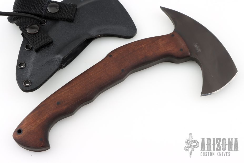 The WK RnD Axe Series is a collaborative design between Master Bladesmith Daniel Winkler and skilled Sayoc Kali martial arts trainer Rafael Kayanan. The handle design provides a standard grip position, as well as a secondary close quarter grip that was developed to emulate the feel of a handgun grip. The optional front spike (6 - 8 month delivery) is a valuable feature in combat usage.