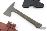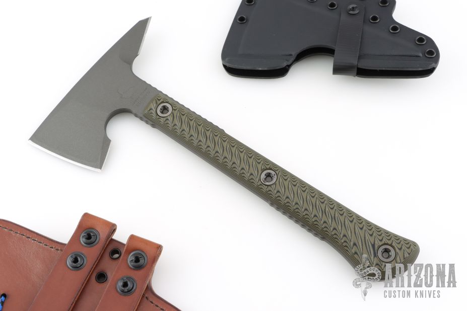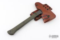 The Jenny Wren Spike offers full tang construction and 1/4" 80CRV2 carbon steel (57-58 HRC) is used in its construction. 3D contoured G10 handle scales are incorporated for grip and durability. The tomahawk has a Tungsten Cerakote finish that facilitates greater resistance to wear, corrosion, chemical and impact damage, as well as providing a low visibility look.