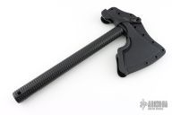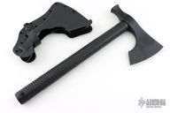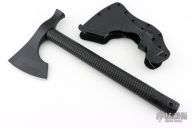 The Model 2 is a robust hammer poll tomahawk with an aggressive 4.125" cutting edge. Combine that with a straight handle makes it a well balanced tool that offers incredible cutting capability. In addition to the sharpened main edge, the Model 2 has a true hammer at the back of the head making it a great companion around camp. The bearded design allows for a high grip, facilitating more accurate fine motor skill work. The Model 2 features a black powdercoat finish for corrosion and wear resistance. Included is a bottom-eject, molded kydex sheath and low-ride M.O.C. straps for belt carry.