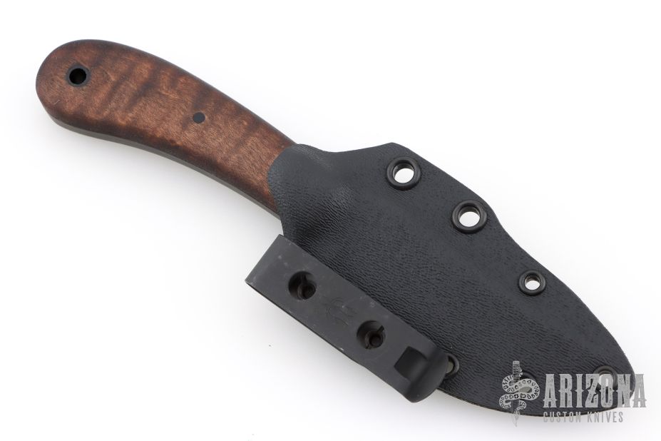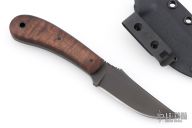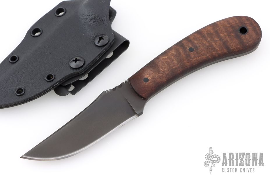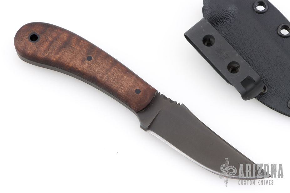 SD1 (STANDARD DUTY 1) For some tasks smaller is better and, often, legal for carry in areas/situations where knife regulations are rigid. SD1 has a trailing point, is light weight and well balanced, and provides extreme cutting performance from a 3” blade.  All leather sheath has a tension screw for adjustment. The Discreet Carry clip can be moved from side to side to accommodate left or right hand  and inside or outside waist band carry.