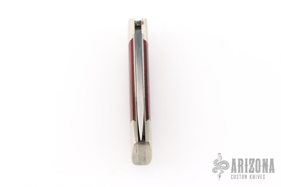This Lockback by Hoffman Cutlery features a Charlton LTD Damascus blade. The handle has dovetailed nickel silver bolsters, laminated wood scales, nickel silver liners and a stainless steel backspacer. #091 on the lock release. Has a couple light scratches, otherwise excellent condition.