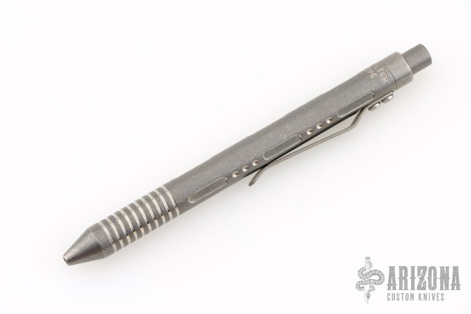 This titanium Click Pen by Brian Fellhoelter is marked PRO2TYPE near the click mechanism. Made of stonewashed titanium. Comes with original tube. New condition.