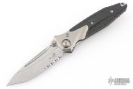 Designed by Microtech and manufactured by Rike Knife, the Socom Bravo Mini is a collaboration knife patterned after the classic Socom. This compact manual folder is an excellent heavy-duty tactical knife. It features a bolstered 6Al4V titanium handle with carbon fiber scales and is offered in both single edge and tanto edge blades. A lanyard hole and pocket clip make for functional carry and the ergonomics are still some of the best in the industry.