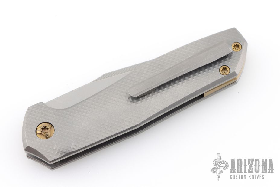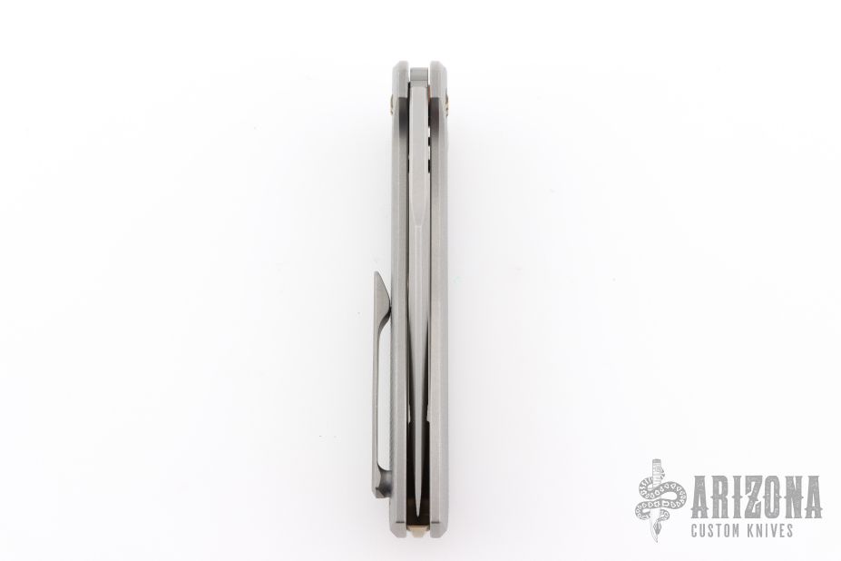 This Ragnarok Mach1 by Nick Chuprin features a harpoon milled blade and flipper.  The handle has an anodized and Solar Flare milled titanium frame, titanium tip up clip with hidden screws, anodized titanium backspacer.  Nice action, lockup and blade seating. Comes with a zippered case and COA. S/N 19. New from maker!