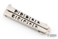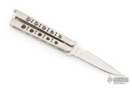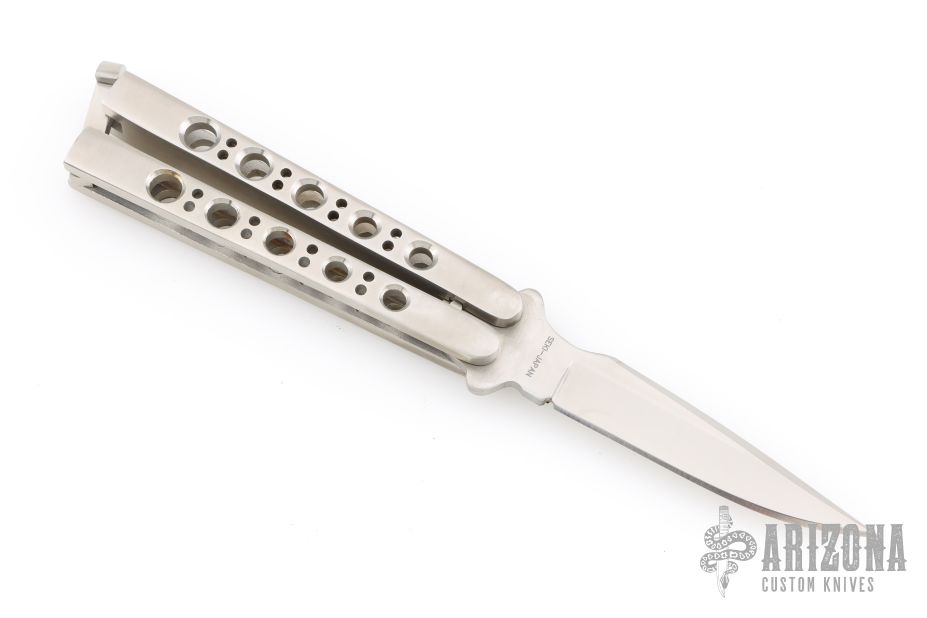 This Vintage Balisong by G Sakai features a satin finished blade. The handle has satin finished stainless steel handles with a T-latch. Excellent condition. Comes with original box.