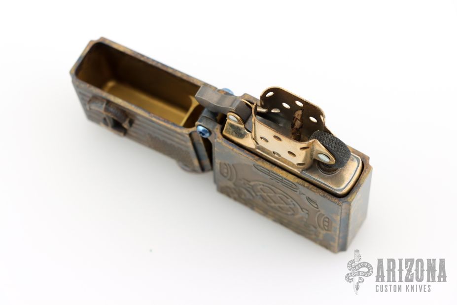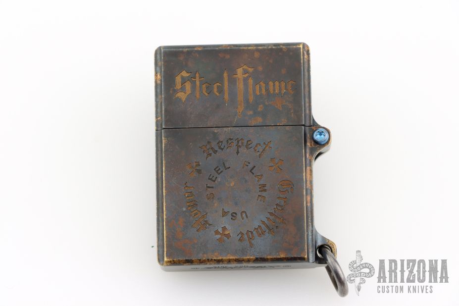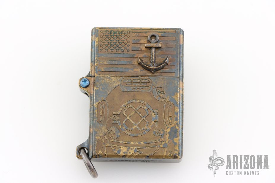 Custom Steel Flame lighter with an Anchor overlay, flag and diver engraving. Excellent condition.