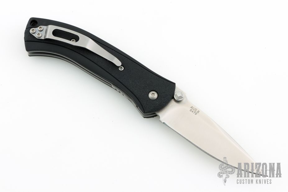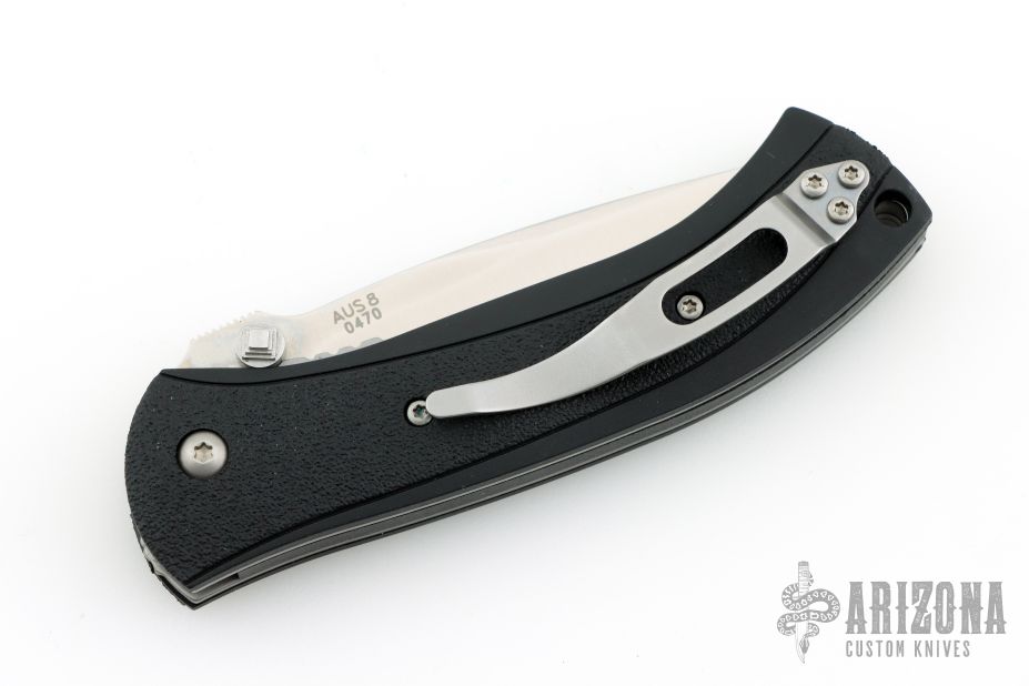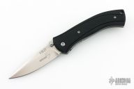 This Scale Release Automatic from V&D Knives (Butch Vallotton and Matt Diskin) features a satin finished spear point blade with swedge, dual thumb studs and notched thumb rest. The handle has black polymer scales over steel liners and black polymer backspacer. Lanyard hole in pommel. Stainless steel tip up clip and lanyard hole in pommel. Comes with original box and papers. Excellent condition.