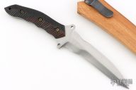 This Baraw Kris by Traditional Filipino Weapons features a satin finished double edged blade with .242" blade stock and 1.333" blade depth, full tang construction. The handle has carved ebony wood scales. It comes with a nice wooden scabbard. Excellent condition.