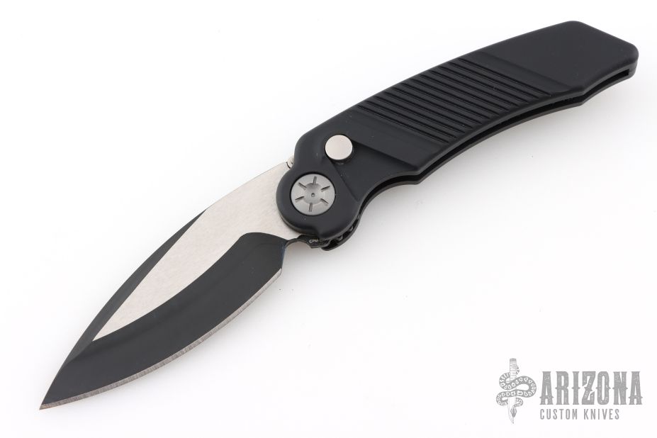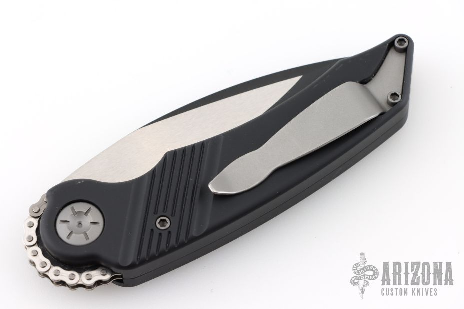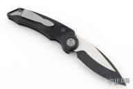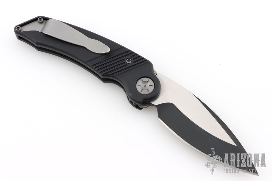 This Mini MRX from Rat Worx/Guardian Tactical features a two tone blade with swedge. The handle is comprised of a black anodized aluminum handle with stainless steel tip up clip and lanyard hole in pommel. Includes padded and zippered case, original box and papers. Excellent condition.