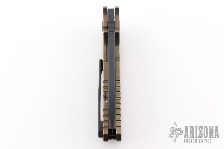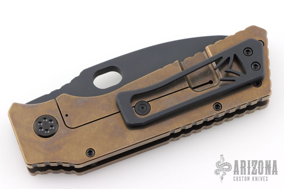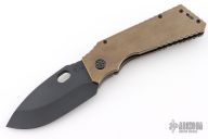 This TTF-1 Fat Daddy by Medford Knife and Tool features a black drop point blade with thumb hole and notched thumbrest. The handle is comprised of a tumble and anodized titanium frame over titanium stand offs. The black titanium pocket clip is positioned for tip up, right hand carry and is satin finished. Includes original box, pouch, and papers. Excellent condition.