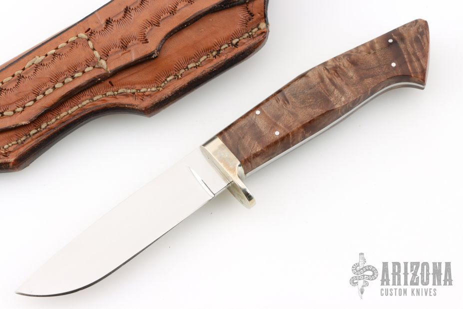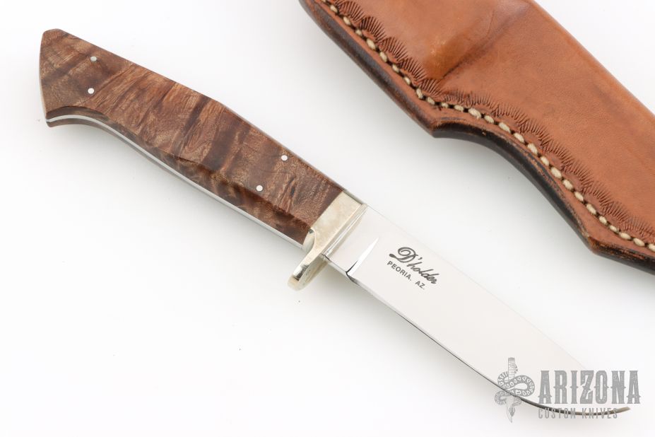 D'Alton Holder was born in Heald, Texas in 1940, was raised in Amarillo and graduated from West Texas State University with degrees in Fine Arts and English Literature. He retired early after 25 years with Diamond Shamrock Corp to become a full time knifemaker in 1988. He began making knives in 1968, joined the Knifemakers Guild in 1973 and was elected to the board in 1976, secretary/treasurer in 1978, President 1982, he served as Vice President 1984. Re-elected to board in 1988 and was elected President again in 1996. Received the Red Watson award in 1982. Named to the NSSF Hall of Fame in 1983. D'Alton is an avid horseman, hunter and fisherman. He prefers to work with natural handle materials and ATS-34. D'Alton has taught over 75 knifemakers, including people like Jim Hardenbrook and Bill Cheatham. Many of his knives are engraved by his wife, Pat Holder. Inducted into the Blade Magazine Cutlery Hall of Fame in 2003. D'Alton passed away in 2022.