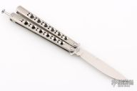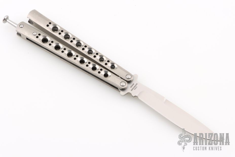 This Model 42 by Benchmade features a stonewash finished blade. The handles are satin finished titanium with spring-latch. Excellent condition . Comes with original box, papers and sheath.
