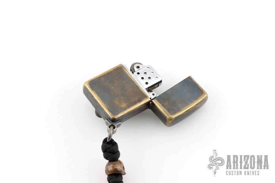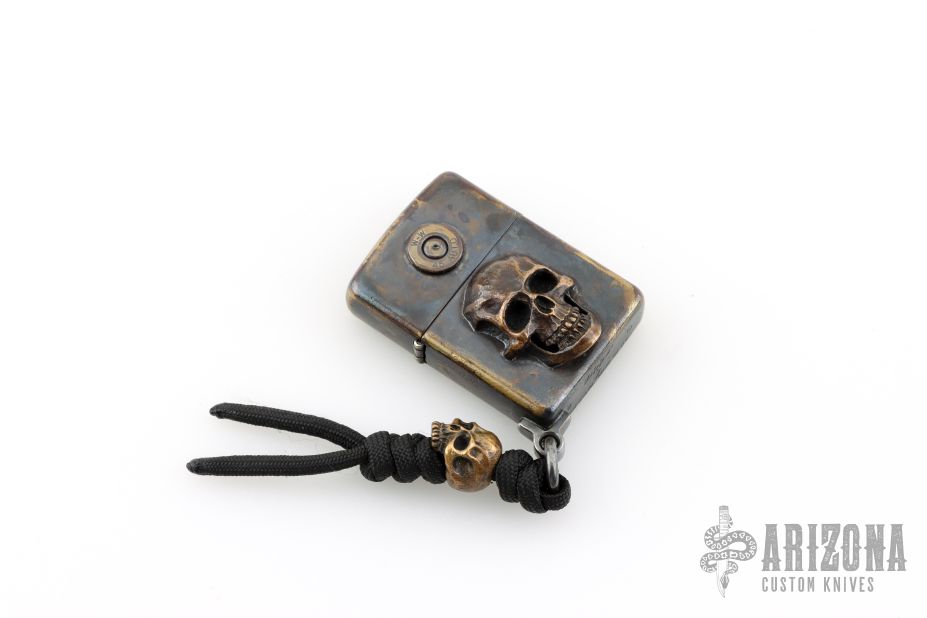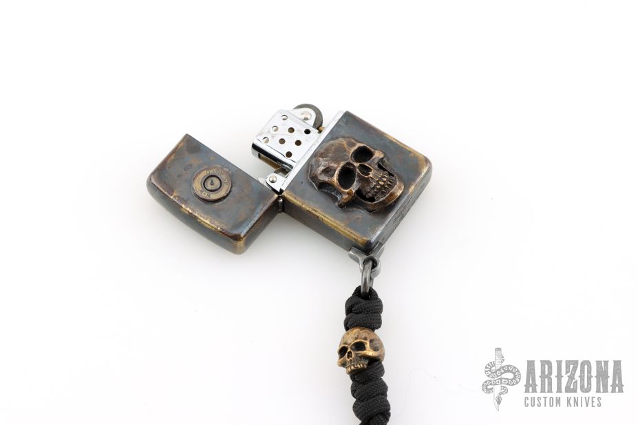 This custom made Lighter lighter by Steel flame is made from solid brass. Excellently crafted 3D Darkness Skull. There is also a 45acp casing inlay. Signed "Obatake 2010 Custom" on the side. Excellent condition.