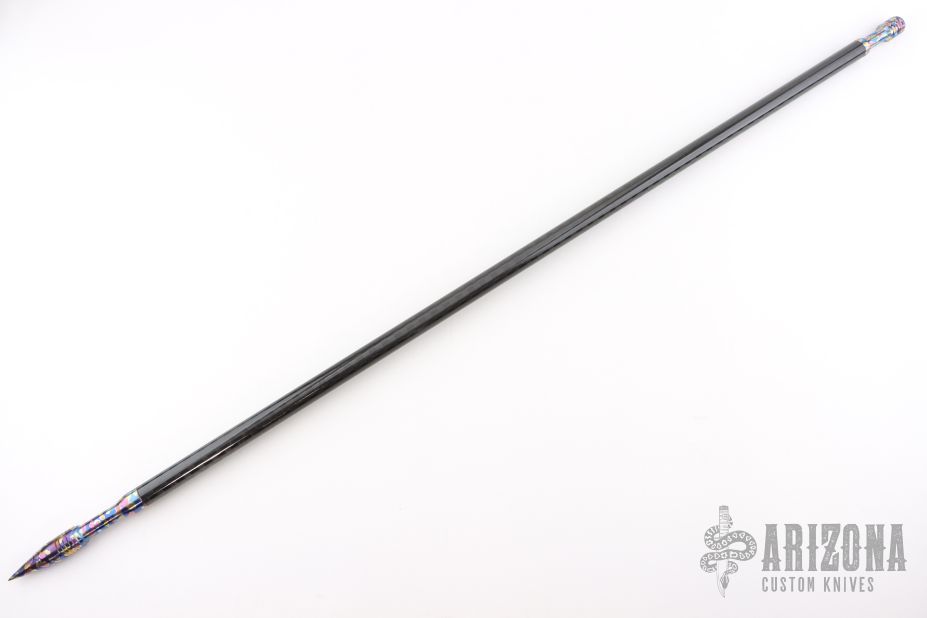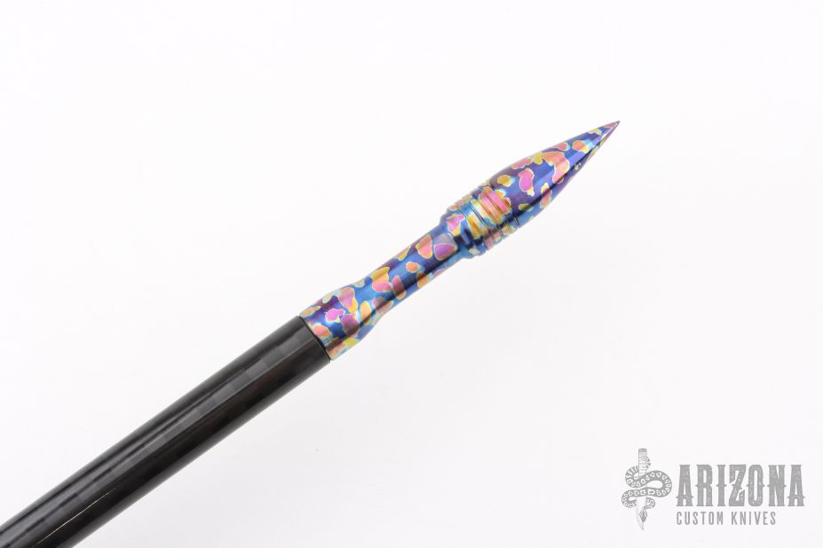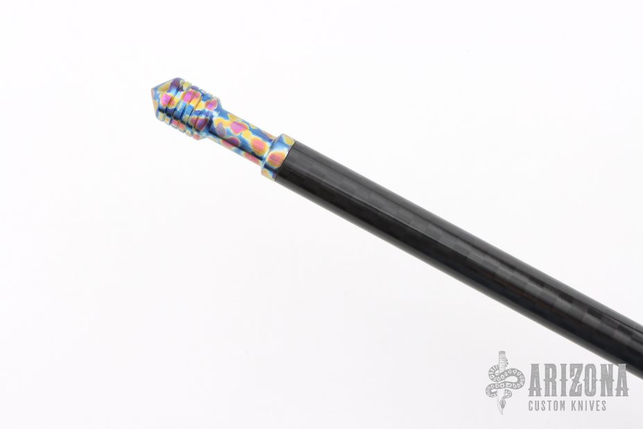 This handcrafted Titanium and Carbon Fiber Spear by Pavlin Shahanov features an anodized spike and cap, paired with a carbon fiber shaft. New from maker!