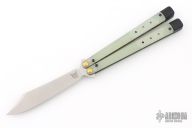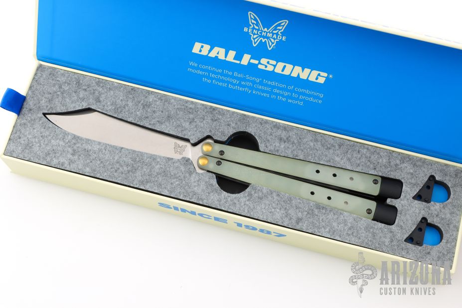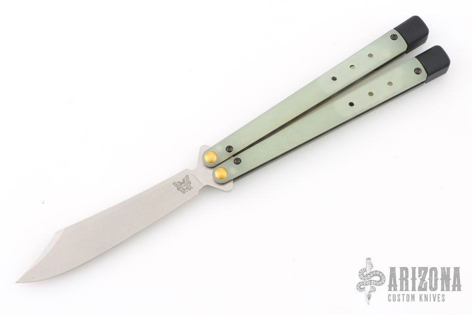 Back to Benchmade's roots, again, the 99 Necron has that classic look but with something hidden inside. What everyone wants nowadays - latch-less, with great balance and user-adjustability at just about every corner. The Necron has it in spades. The handle features removable tungsten weights and handle extensions, with the Jade G10 being somewhat see-through, allowing you to easily check and always admire your creation. The scimitar blade shape is one of our favorites and definitely at home with this design.
