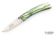 I have been a member of the Florida Knifemakers' Association since it's start in 1977 and a member of the Knifemakers Guild since 1998. I make knives one at a time using ATS-34, 440-C, D2 and various Damascus steels. When it comes to handle materials natural stuff like fossil ivories, bone, horn, exotic woods and pearl work best for me. I make liner lock folders, some automatics, hunters, skinners, and fillet knives. I also make the sheaths that go with them.