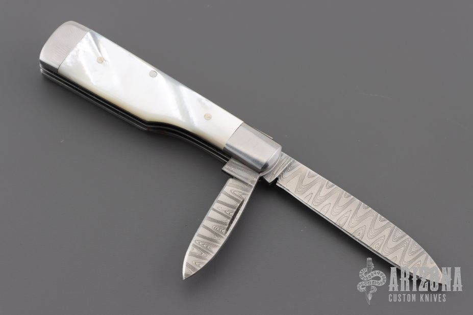 Home Products 2-Blade Gunstock - Damascus and Mother of Pearl