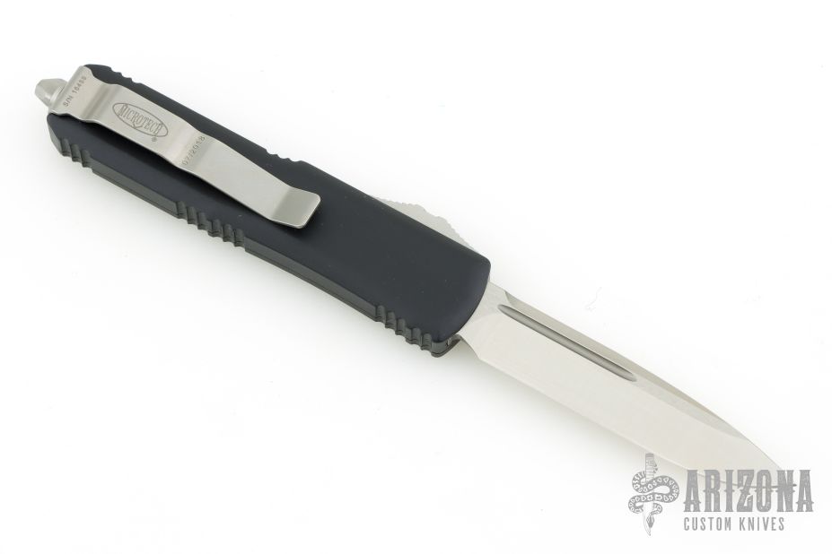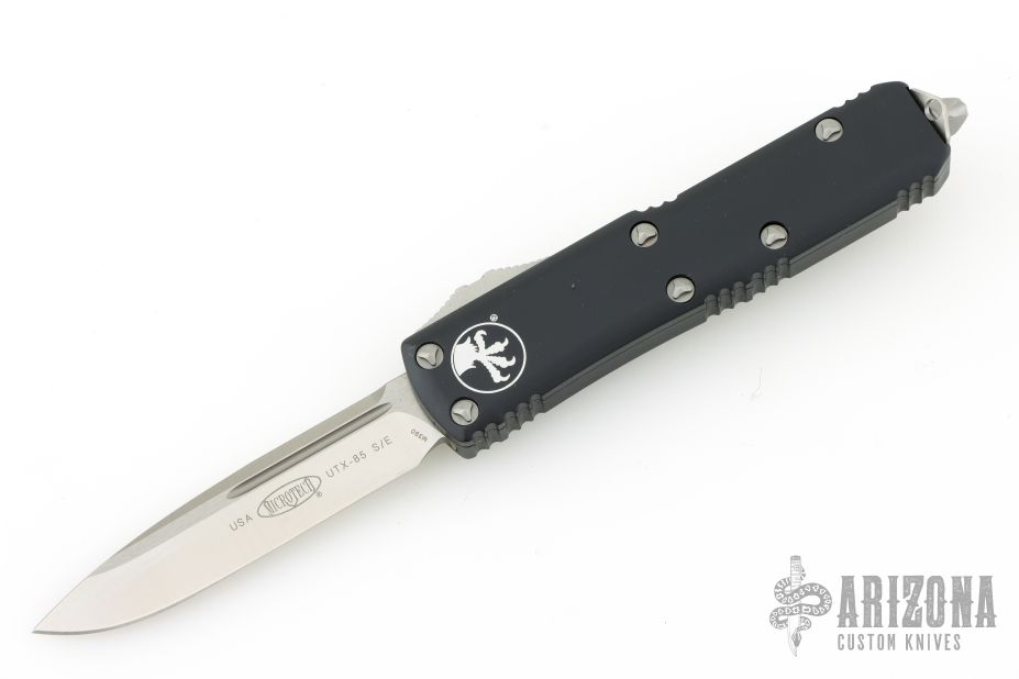 This UTX-85 by Microtech features a satin finished. The handle has a black aluminum frame with blasted hardware and tip down clip. Comes with original box and papers. Dated 07/2018 and S/N 16459.  Includes the original box and papers. Has a couple light scuffs otherwise Excellent Condition.