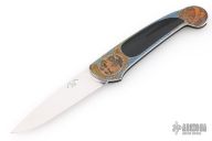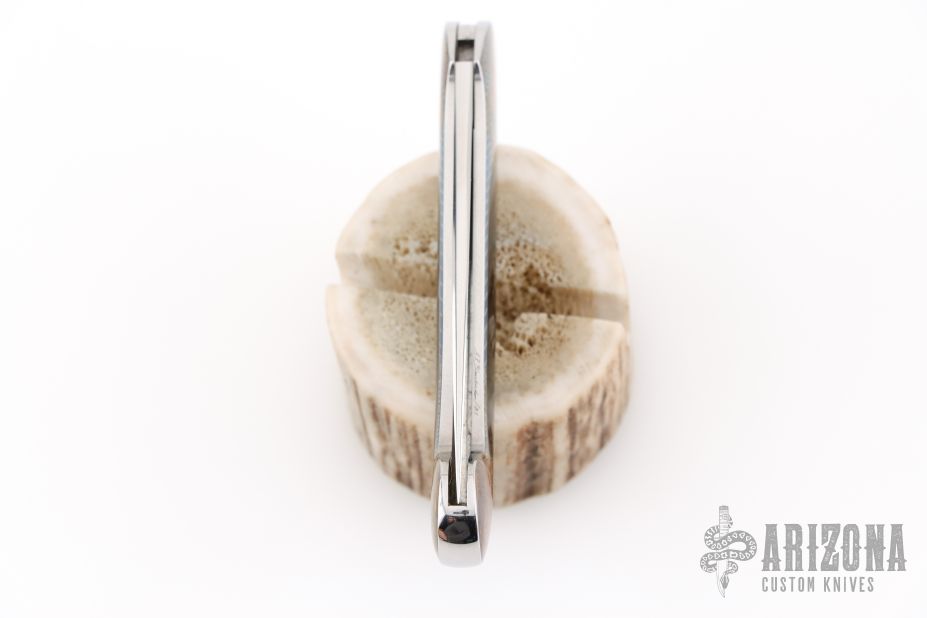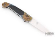 Steve Hoel made his first fixed blade knife in 1953. In 1974 Steve Hoel ventured to California, where he spent three days in the shop of Bob Loveless and Steve R. Johnson, when they were partners. This was his first real exposure to high quality handmade knives, an experience that gave him a big boost. He also developed a big interest in pocket knives at that time. Shortly thereafter he made his first interframe and multiblade folders. In 1978, he joined the Knifemakers Guild, and one year later he retired and began making knives full time. Steve was one of the first to design his knife shapes for engraving. He worked closely with master engravers including Lynton MacKenzie and Steve Lindsay to develop the engravable art knife design.