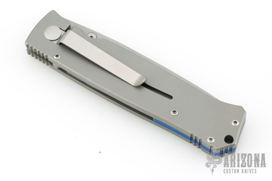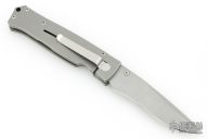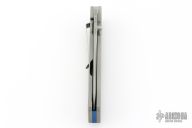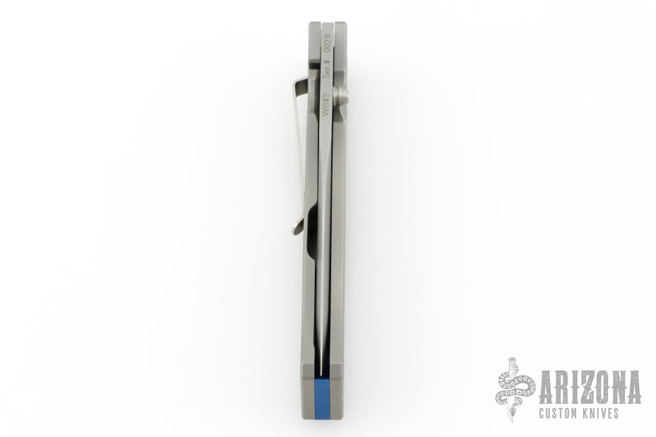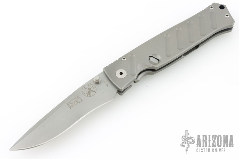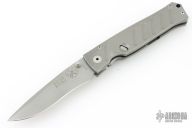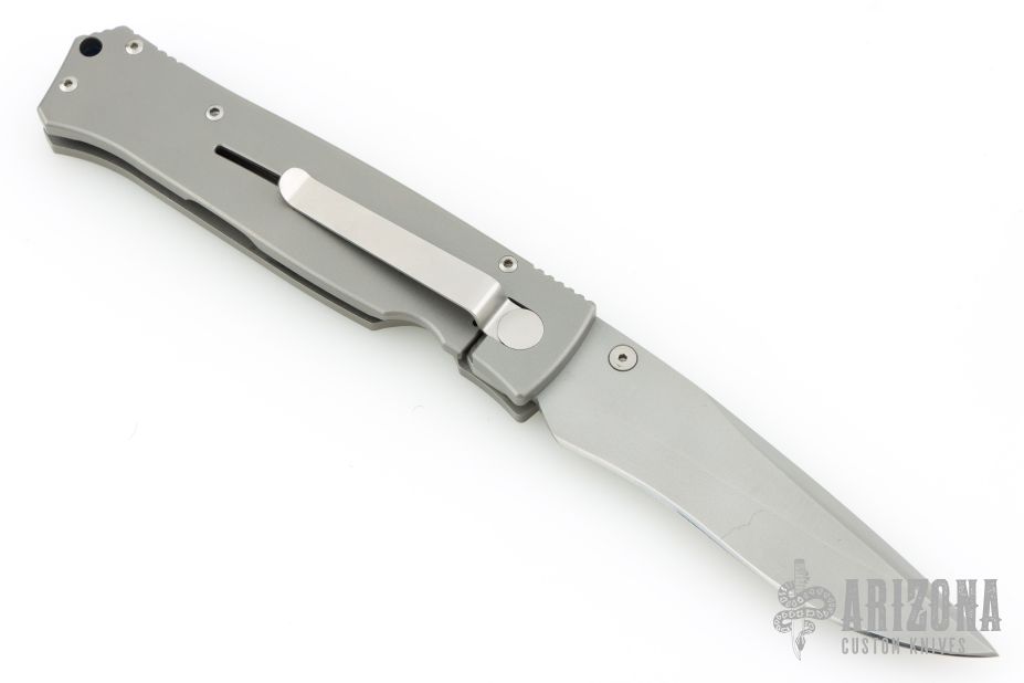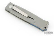 This Brend Collaboration - WB #2 Tactical D/A (#0148) is a collaboration between Walter Brend and Cutters Knife & Tool. This is the D/A version. Has a recurve bead blasted blade with false top edge and single thumbstud. The handle has a notched thumbrest on the bead blasted titanium frame. Smooth action with a nice detent, lockup and blade seating. Includes original box, papers and belt sheath. Has a couple light scuffs, otherwise excellent condition.